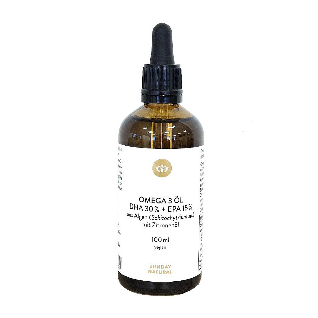 Omega 3 olej DHA 30%+EPA 15%, veganské, z mořských řas (Schizochytrium sp.) s citrónovým olejem, 100ml