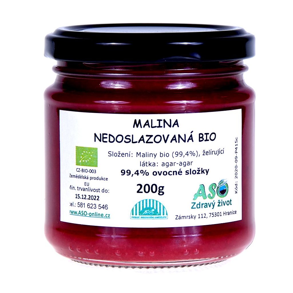 Výborná ovocná pomazánka z bio malin (99,4%), nedoslazovaná, vhodná pro diabetiky a pro všechny, kteří chtějí omezit příjem cukru. Domácí výroba bez přidání jakýchkoliv chemických prostředků.