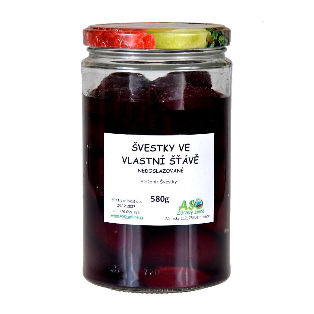 Švestky ve vlastní šťávě – 100% přírodní, bez přidaného cukru, 580g.