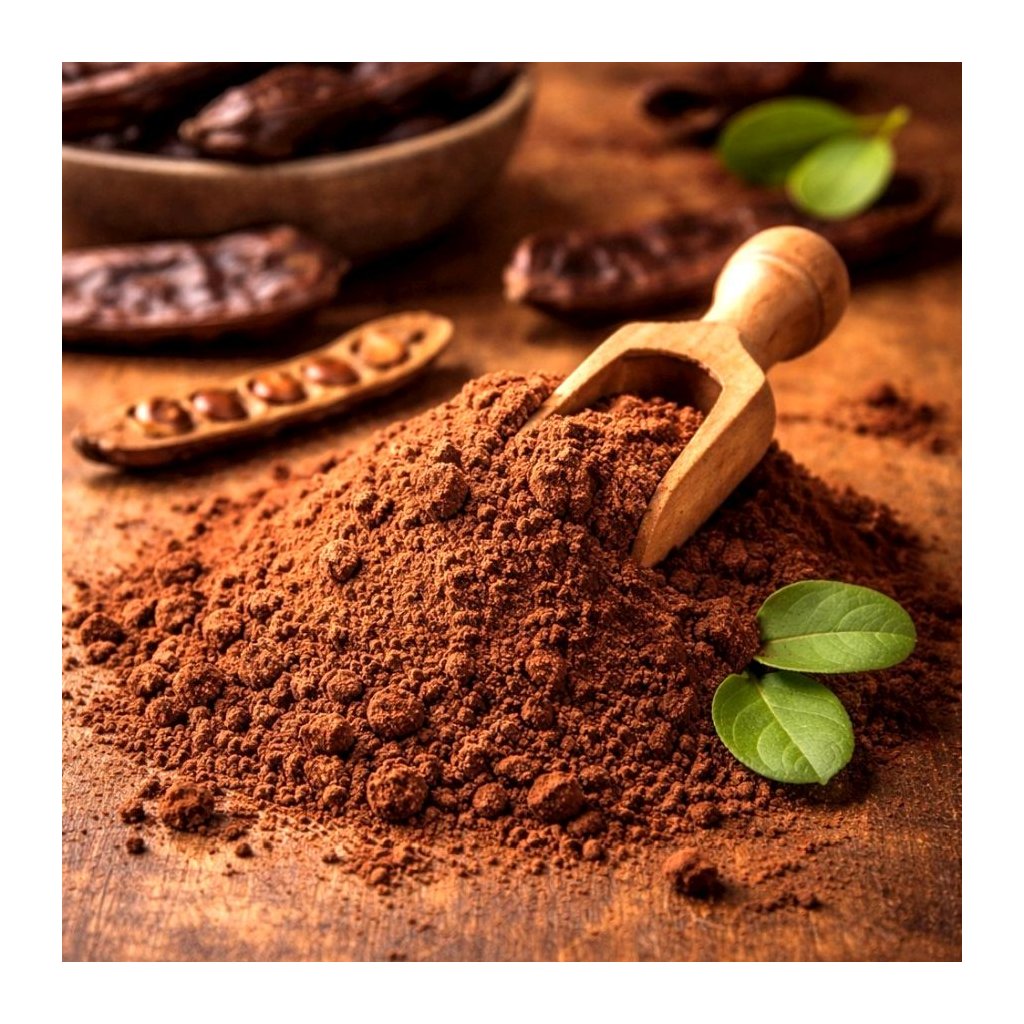 Karob (svatojánský chléb) je přírodní surovina pocházející z oblasti Středomoří a Středního východu, kde roste v podobě lusků na stromu. Po sklizni se z lusků oddělí semena (využívaná v potravinářství k jiným účelům) a zbývající část se po usušení jemně mele na prášek – vzniká tak kvalitní bio karob.